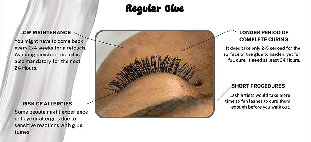 light of a specific wavelength hits it. After total cure in 2 seconds, no more worry about sticking to the lashes around it. No need to dry with a fan or cure ir over time after the procedure.